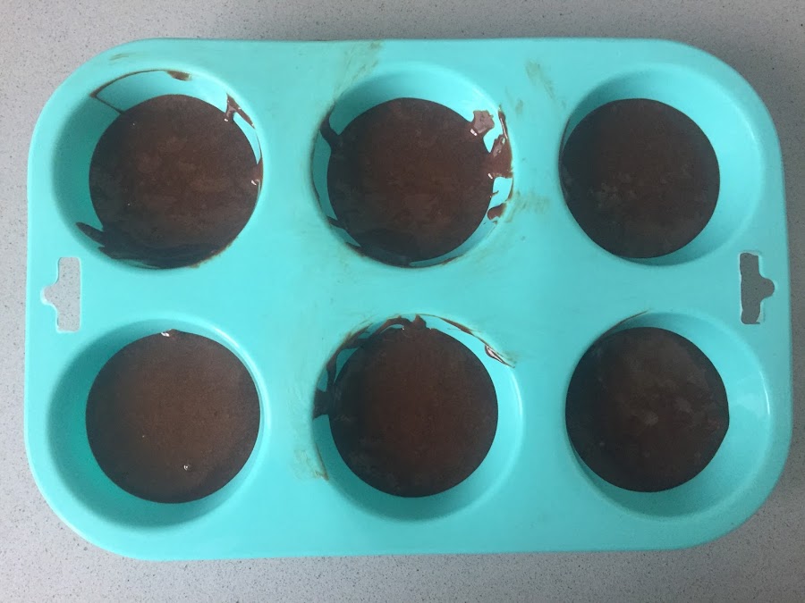 Finalizado este paso, seguimos rellenando los moldes hasta os 2/3 de su capacidad y metemos en el horno a una altura media durante unos 7-10 min o hasta que veamos que la superficie está un poquito dorada. Dejamos enfriar unos segundos, desmoldamos y ¡¡YA ESTÁN LISTOS PARA TOMAR!!