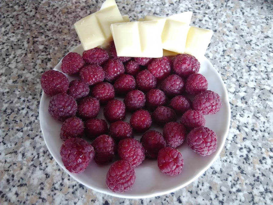 Para rematar, una bonita decoración nunca está demás no? y más si aún por encima le aporta un gran sabor al plato. Pues bien decidí que un coulis de chocolate blanco junto con unas frambuesas sería el contraste perfecto para este plato.