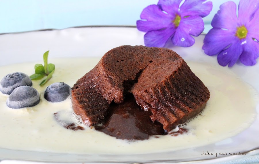 Y entre tantas y tan buenas recetas como tiene me he decantado por estos ricos Coulant de chocolate o tarta de los mil nombres como también la llaman. Un postre que fue de los primeros que puse en el blog y que requería una renovación, pues la foto no le hacía justicia a una delicia como ésta. Le he dado mi puntito de canela, porque me encanta lo bien que le queda...