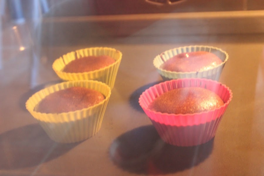 Untamos los moldes con mantequilla y harina y repartimos la masa en ellos. Yo he usado moldes de silicona de magdalenas. Se desmoldan mucho mejor.