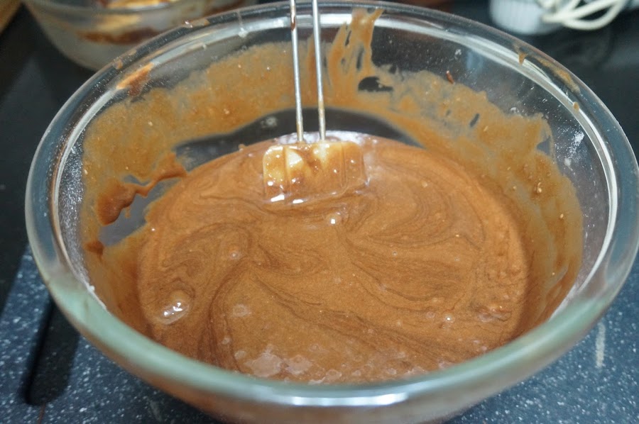 Ha esta mezcla le pondremos el chocolate que hemos fundido junto con la mantequilla y el cacao en polvo.