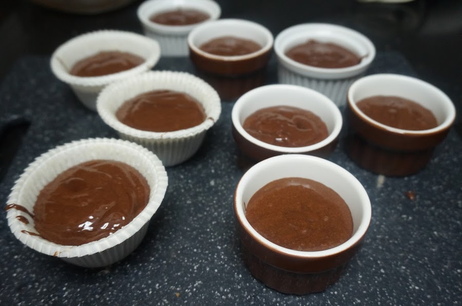 Rellenamos los moldes llenándolos 3/4 partes de su capacidad, ya que suben.