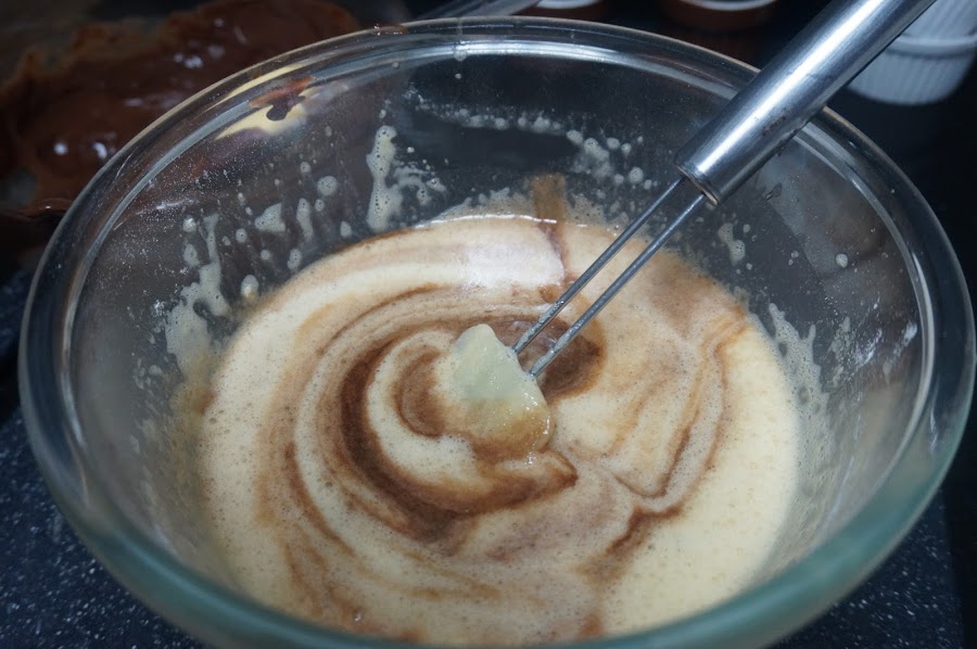 Mezclamos con una espátula con movimientos envolventes, poco a poco hasta que esté todo el chocolate bien mezclado.