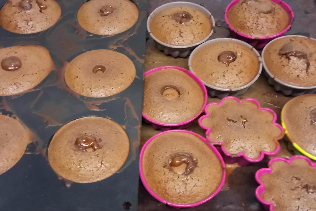 Echamos la mezcla en los moldes de silicona y horneamos a 200ºC 8 minutos.
