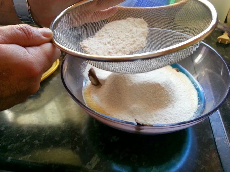 Añadimos la crema de chocolate y la harina y la harina tamizada.