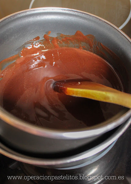 2. Fundimos el chocolate en trozos junto con la mantequilla también cortada al baño maria y removemos hasta que se derritan por completo.