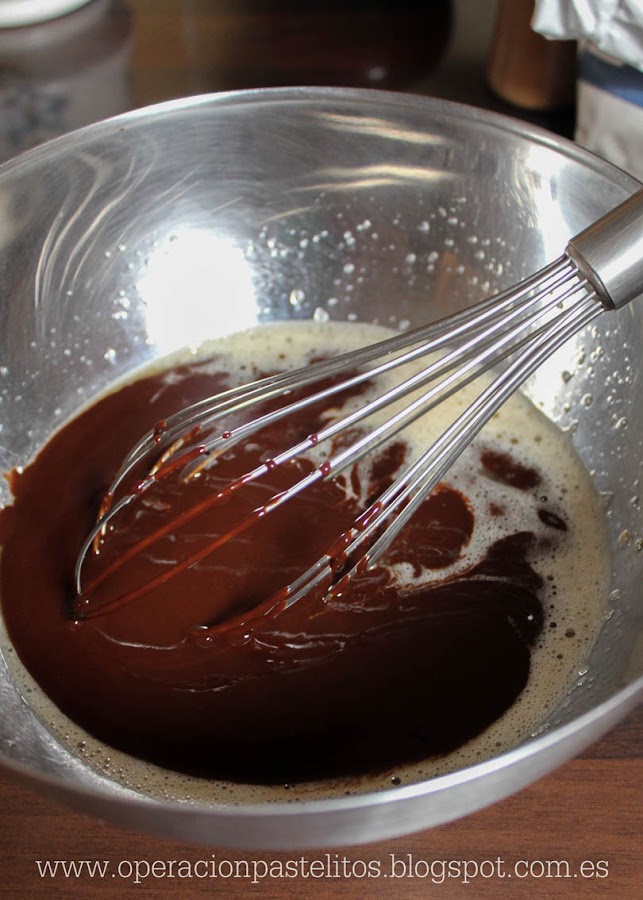 4. Agregamos la mezcla de chocolate/mantequilla reservados anteriormente y mezclamos bien.