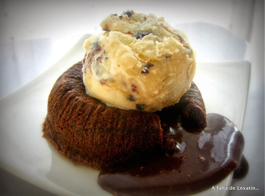 Sacar del horno,desmoldar y servir inmediatamente. Tiene que quedar cocido por fuera y el interior de chocolate cremoso.