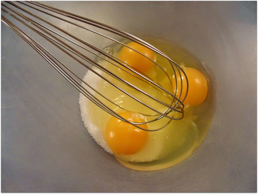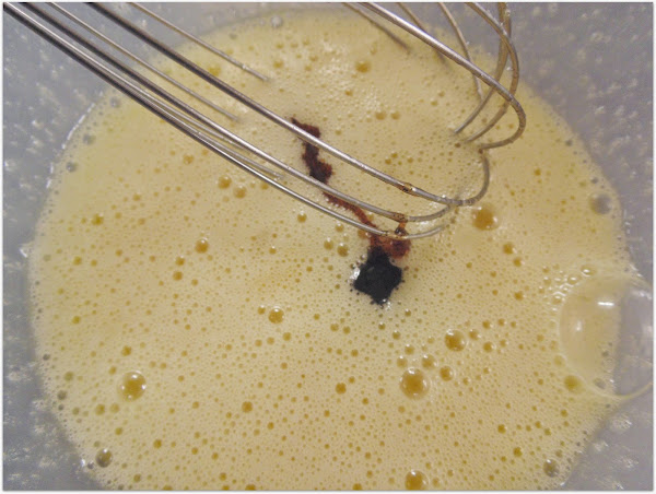Batimos los huevos con el azúcar y agregamos una cucharadita de vainilla