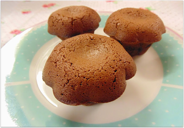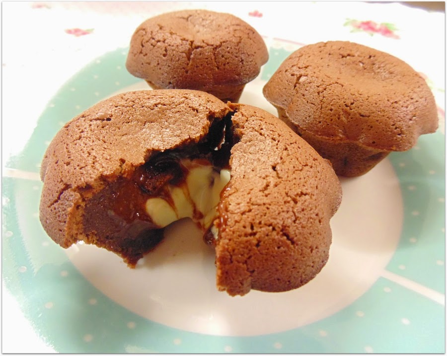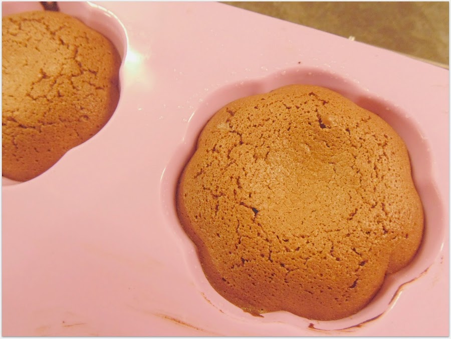 Horneamos a 200 grados entre 6-8 minutos. Todo dependerá de vuestro horno. En cuando la parte de arriba esté hecha estarán listos. No vale introducir palillo porque el centro está líquido. ^^