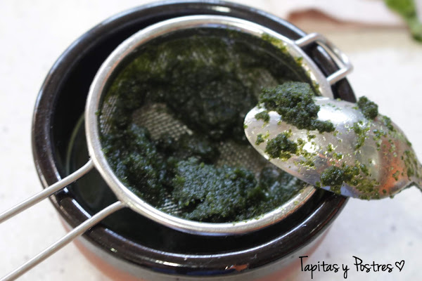 Ahora la podemos usar tal cual, pero notaréis partículas de hierbabuena. O bien la coláis y tendréis un coulis más fino.