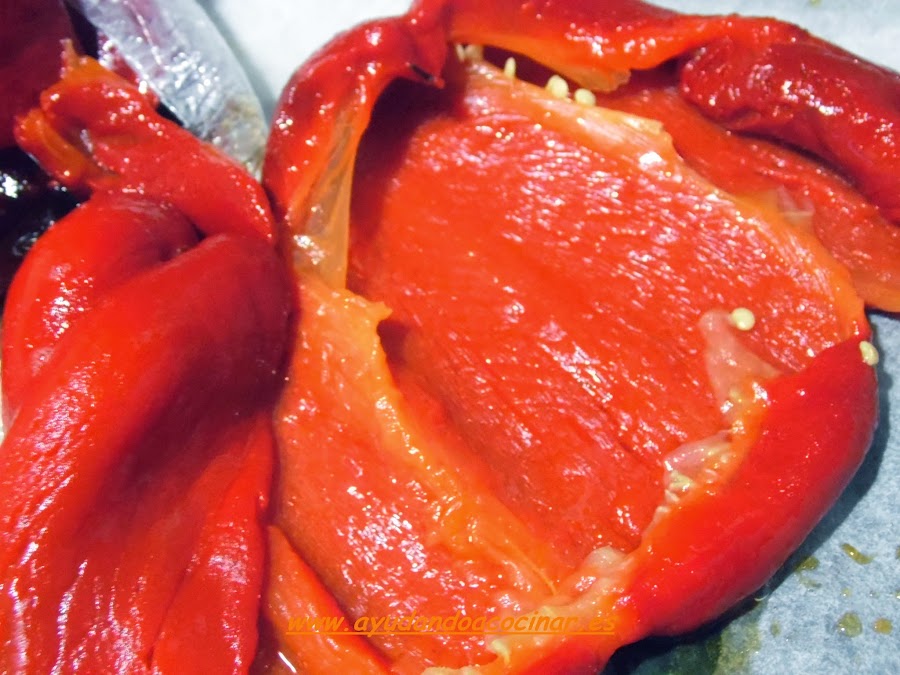 Hacer lo mismo con el pimiento. (Éste al sacarlo del horno lo podremos introducir en una bolsa de plástico cerrada, así sera mas fácil quitarle la piel)