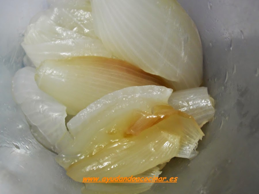 Limpiar la cebolla, ponerla en el vaso de la batidora donde la vamos a triturar.
