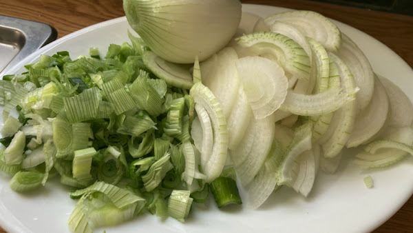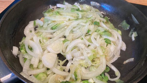 Prepara una sartén con un poco de aceite de oliva y sofríe las cebolletas hasta que queden transparentes, pochadas.