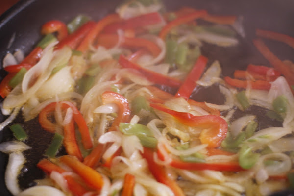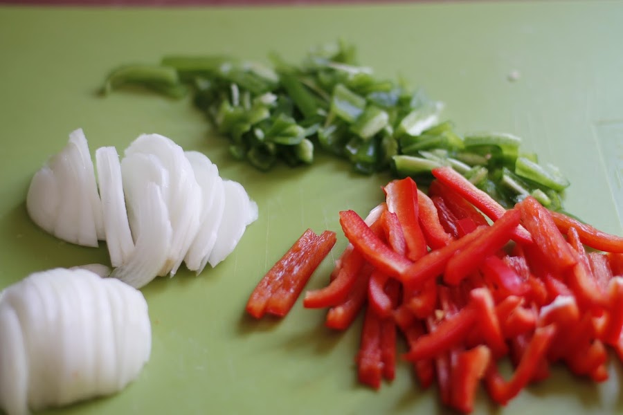 Cortamos la Cebolla y los Pimientos a tiras