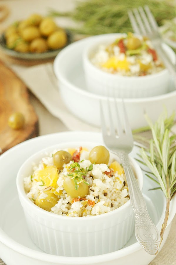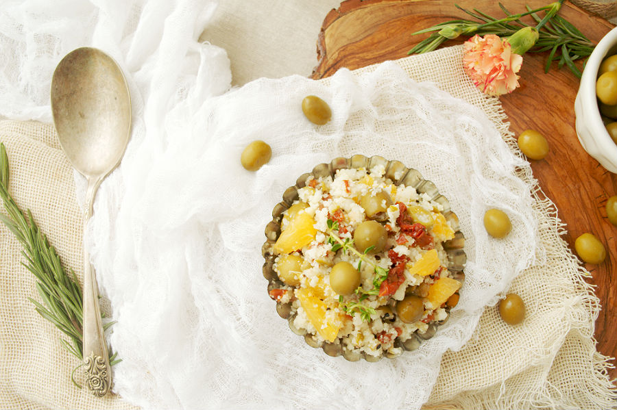 COUS COUS DE COLIFLOR CON ACEITUNAS VERDES Y TOMATES SECOS