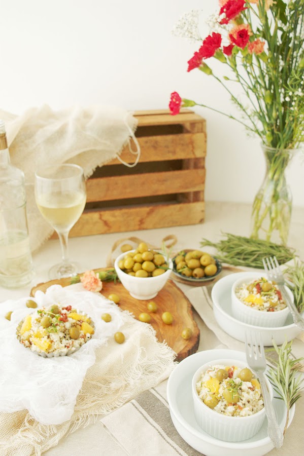 Entonces, me decidí por un cous cous de coliflor con aceitunas verdes y tomates secos. Una especie de ensalada ligera a la que las aceitunas le dan un sabor excepcional. La verdad es que no sabía que daban tanto juego, ni tampoco que ayudan a mantener el colesterol a raya con su ácido oléico. ¿Y tú?