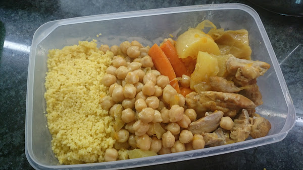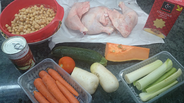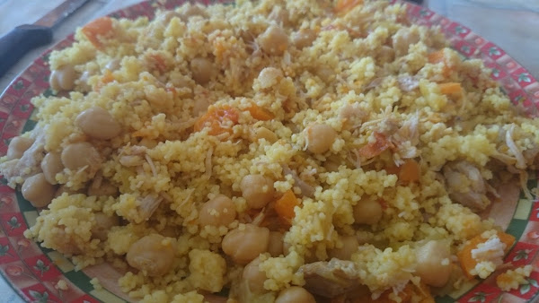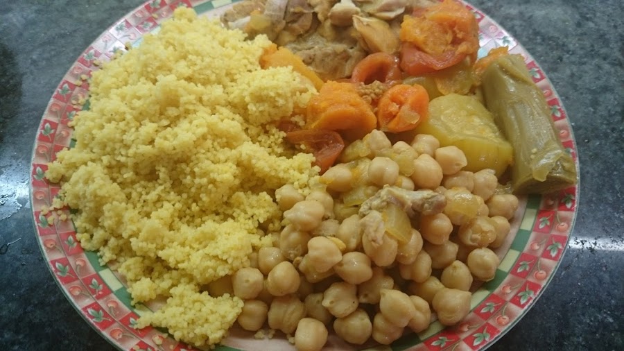 14.- Para comer se trocea todo, se mezcla con el Cous-Cous y se le rocia con un poco de caldo caliente. Si queremos darle un toque picante podemos agregar un poco de Cayena en polvo.