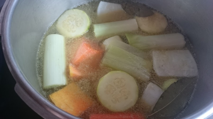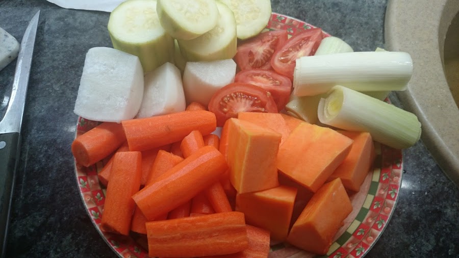 1.- Pelamos y troceamos toda verdura en trozos grandes.