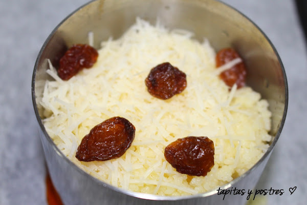 Ponemos un poquito (no mucho) de parmesano rallado y tres o cuatro pasas encima.