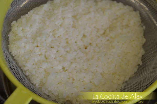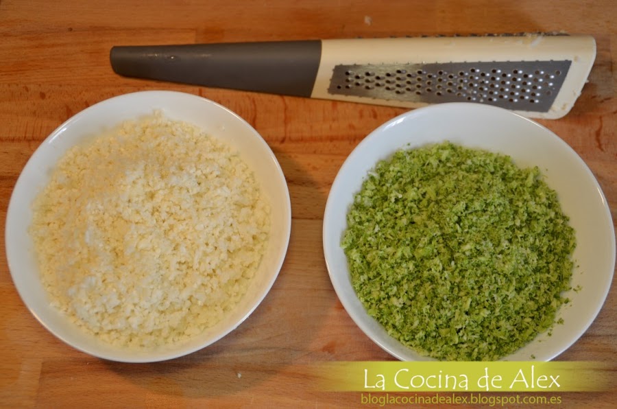 También vamos a rallar el brócoli y la coliflor, usando solo la parte final de las "flores" para conseguir nuestro "cous cous". Reservamos.
