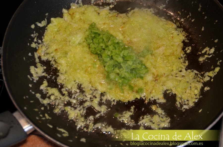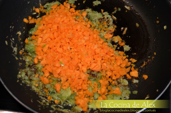 A continuacion añadimos la zanahoria que seguiremos cocinando hasta que este al dente y por ultimo la berenjena que es la que menos tiempo necesita de cocción.
