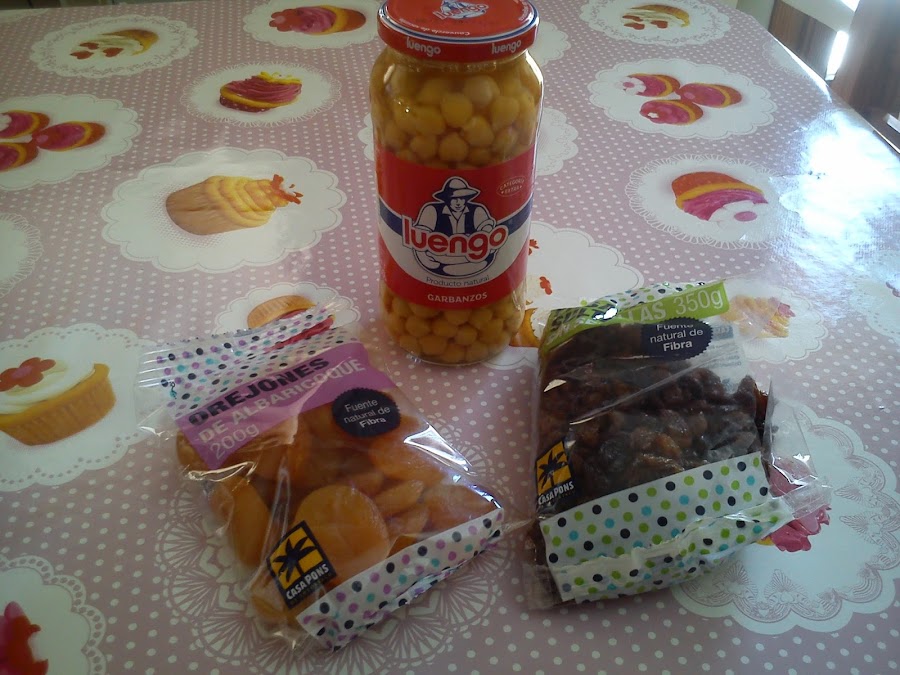 Fruta seca, yo pongo pasas sultanas y orejones de albaricoque.