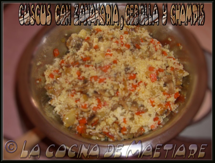 Pasado el tiempo quitarle la tapa y deshacer o soltar el couscous con un tenedor , sazonar con una pizca de sal y un poquito de aceite de oliva. Seguir separando los granos de couscous.