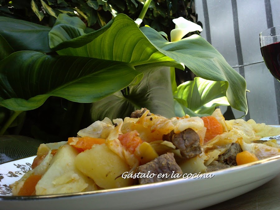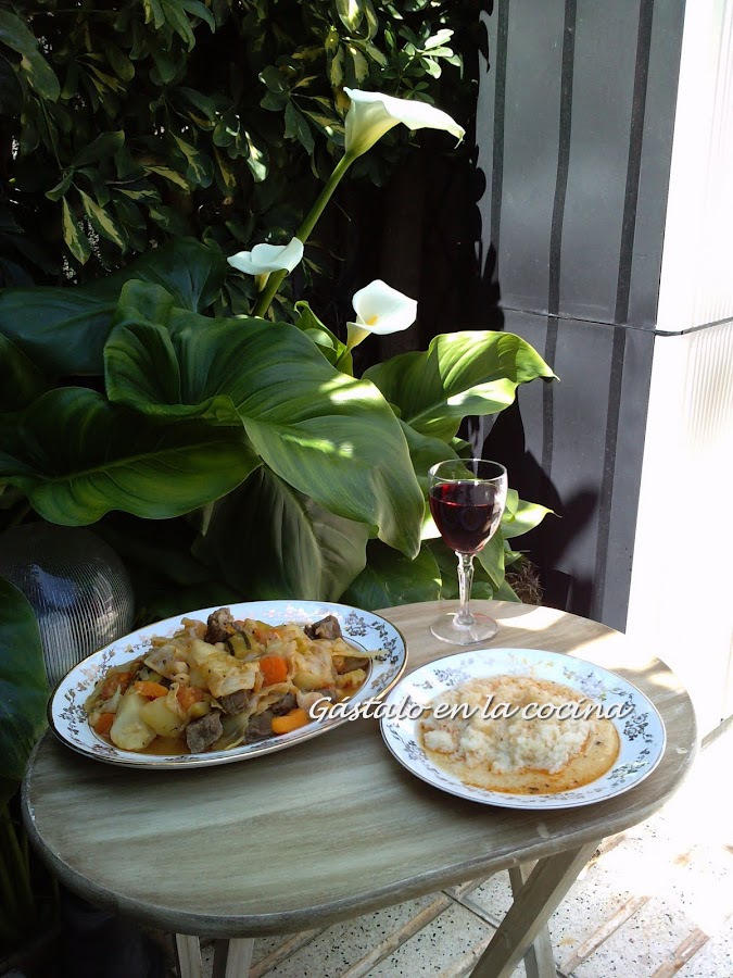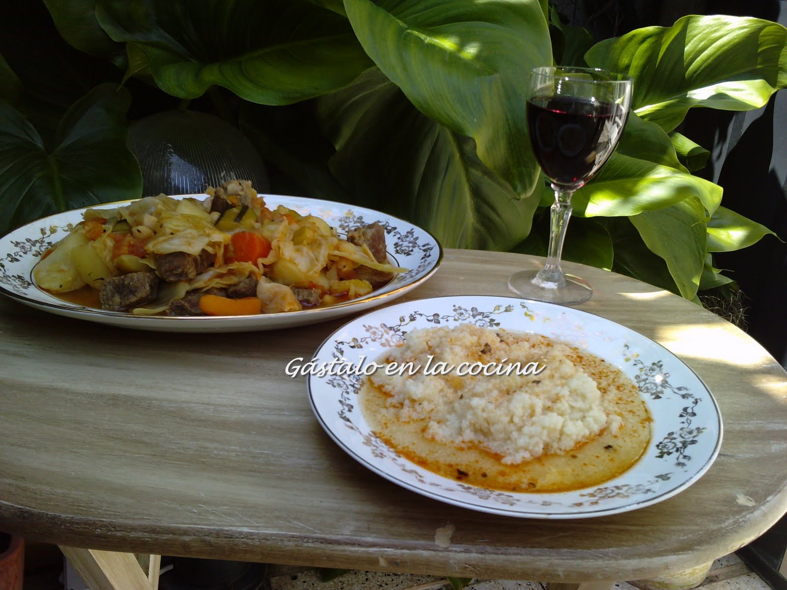 Hacemos la sémola como dice el paquete y presentamos: por un lado la carne y las verduras y por otro la sémola junto con el caldo.
