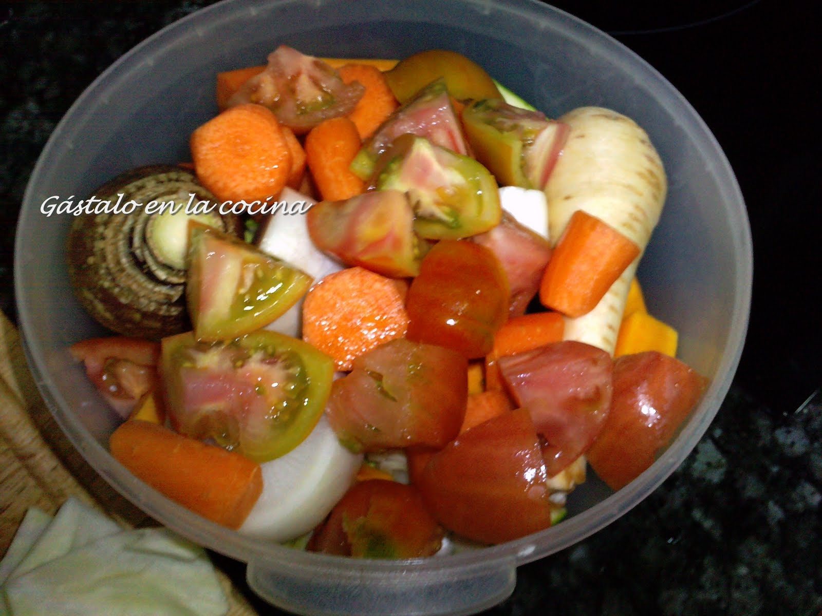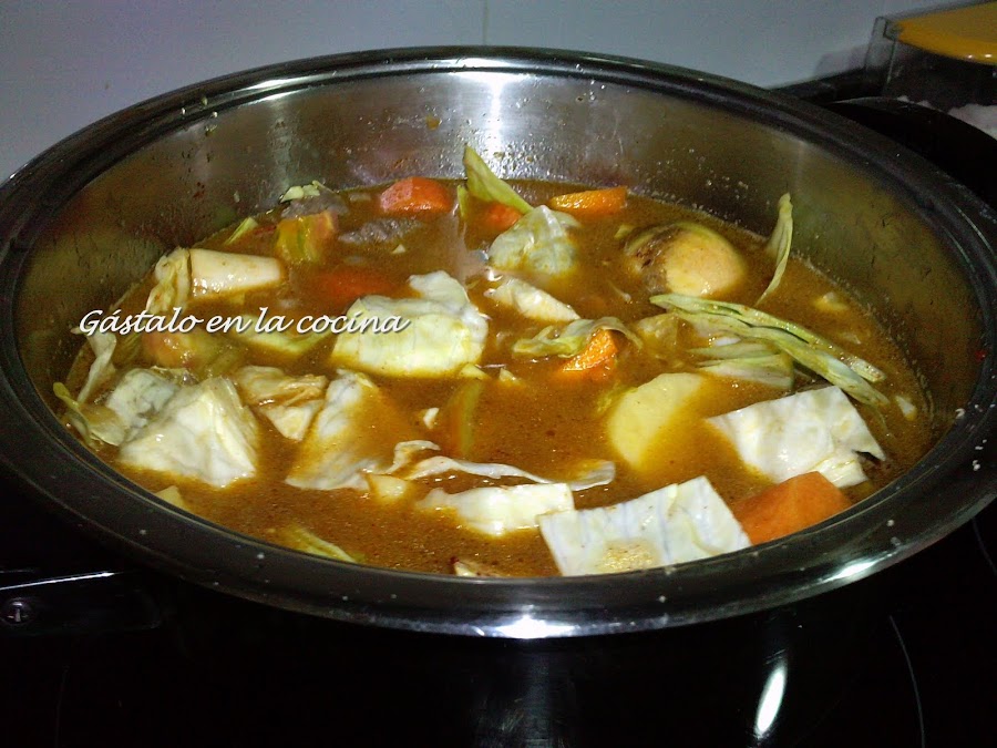 Cubrimos de agua las verduras y dejamos a fuego medio 1 hora