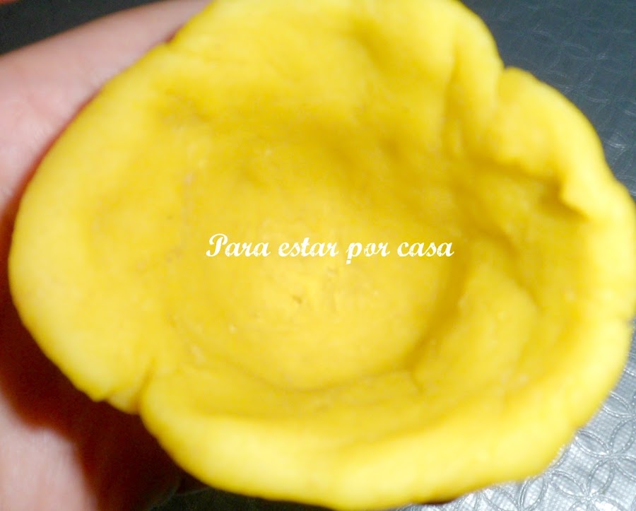 Cogeremos una porción y le daremos forma de bola que después aplanaremos un poco. Introduciremos un dedo y ayudándonos de las dos manos iremos dando forma de cuenco hondo.