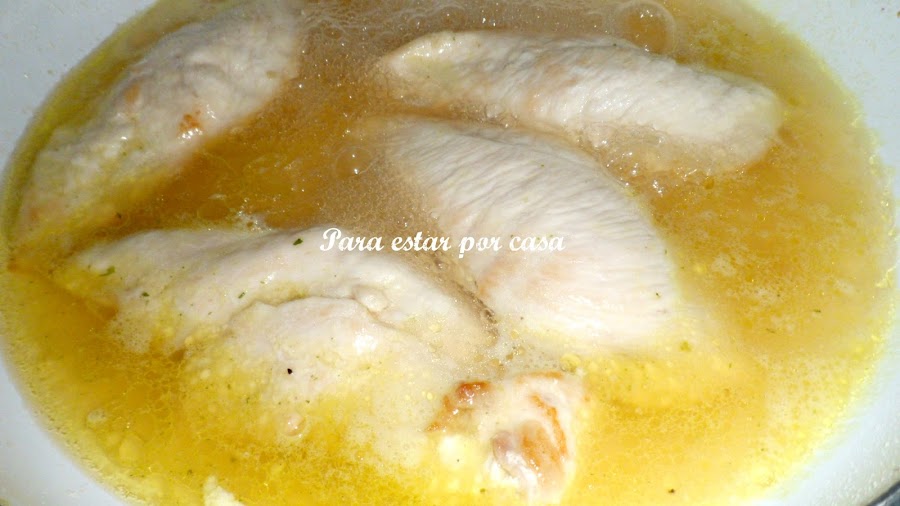 Una vez selladas, añadiremos a la sartén el caldo de pollo y dejaremos que cuezan hasta que sepamos que están hechas.