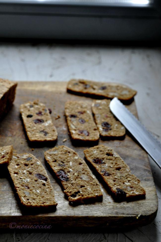Cortamos en rebanadas finitas y colocamos en bandejas de horno. Tostamos unos 10 minutos por cada lado y dejamos enfriar.