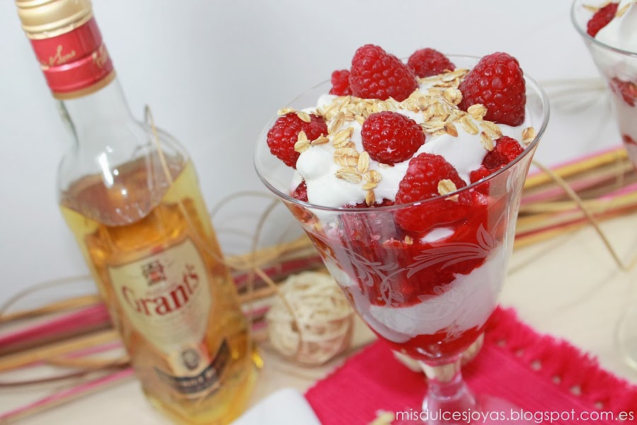 Hoy vengo con otra receta que he preparado para un reto. Esta vez se trata del reto de la comunidad Trotamundos. La propuesta dulce de la comunidad Trotamundos para el reto del mes de febrero, era el Cranachan, un postre típico de Escocia. Y para ser sincera poco conozco la cultura gastronómica de Escocia, y no tenia ni idea que era el Cranachan, así que el reto de la comunidad este mes para mí era un verdadero reto. Después de ver las fotos y la receta de esta delicia en el blog de Mara - Mara en Gredos, y de haber investigado un poco por Internet sobre la historia de este postre y sus características, pues me ha encantado por su sencillez y elegancia. Es un postre muy antiguo y se compone de varias capas de harina de avena o copos de avena tostadas, queso crowdie*, nata montada (crema de leche) aromatizada con whisky, miel y frambuesas frescas.