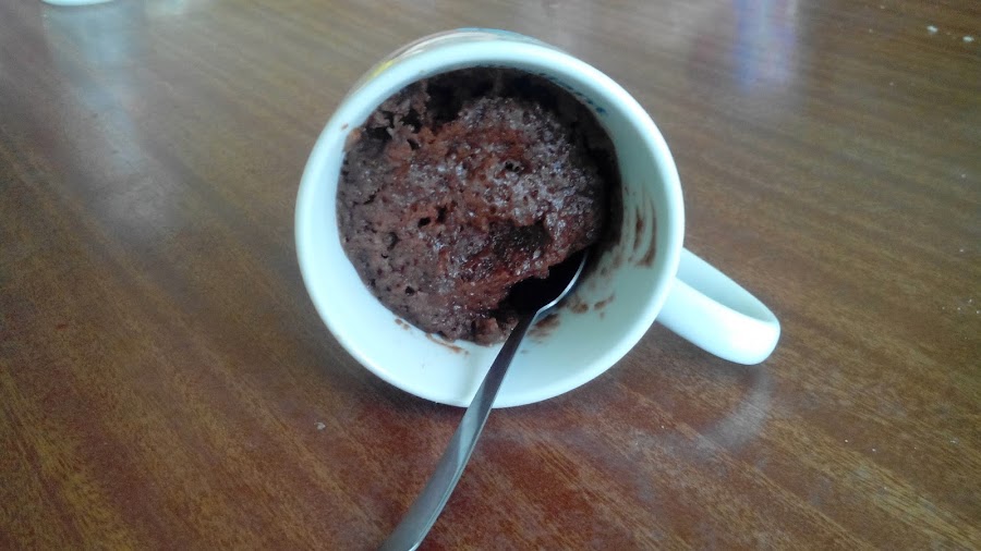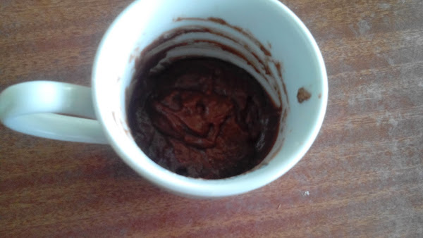 Listo!! Un delicioso Mug Cake de Chocolate Sin Leche, Sin Mantequilla y Sin Huevos :)