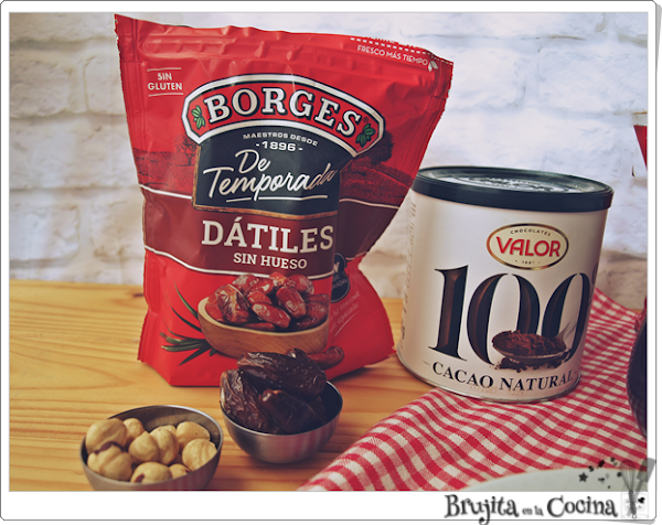 Hoy os propongo preparlo en casa, con una versión más saludable ya que no lleva azúcar y en su lugar he usado dátiles Borges sin hueso para endulzar que he descubierto gracias a la Disfrutabox del mes, también he usado cacao 100€ de Valor, que siempre hay en casa.