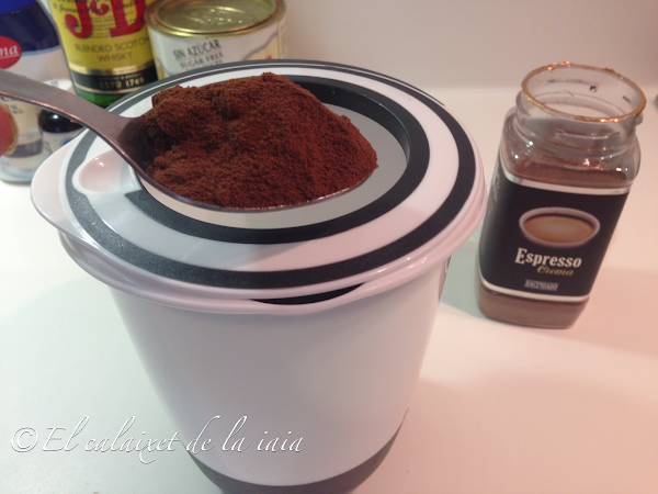 En el vaso de batir, pondremos una cucharada de café instantáneo fuerte y cremoso