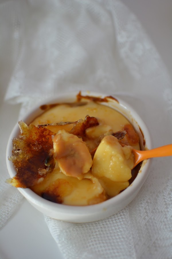 Que le podia añadir a la crema catalana que le pegara?? Algo de fruta! Plátano!!!!! Y si añadia platano no me podia resistir a añadirle tambien dulce de leche, porque postre con platano = cucharada generosa de dulce de leche!! ;P