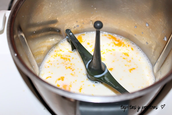 Agregamos la piel del limón junto con la canela, y cocemos 11 minutos a 90º y velocidad 2. Cuando termine el tiempo, miramos si la mezcla está espumosa. Si es así programamos otros 2 minutos a la misma velocidad y la misma temperatura. Si no tiene espuma, volvemos a programar dos minutos sin temperatura a velocidad 2. Retiramos la piel de limón y la ramita de canela.
