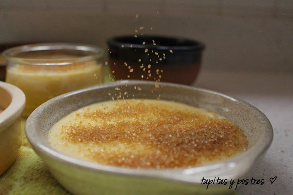 Y quemamos el azúcar con un soplete ( yo estreno soplete con este postre).