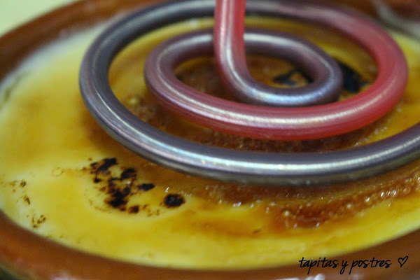 O la quemamos con un hierro especial para estos menesteres. Si no tenéis ni soplete, ni hierro, metéis en el horno, solo con el grill hasta que se dore el azúcar.