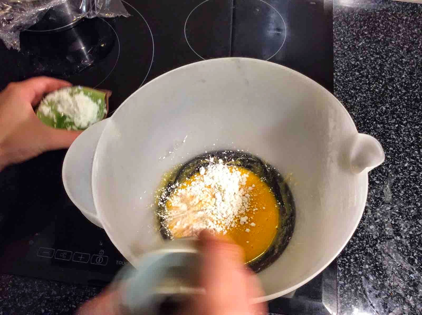 2: En un bol mezclamos las yemas y añadimos el almidón (maicena) poco a poco para que la pasta quede bien homogénea.