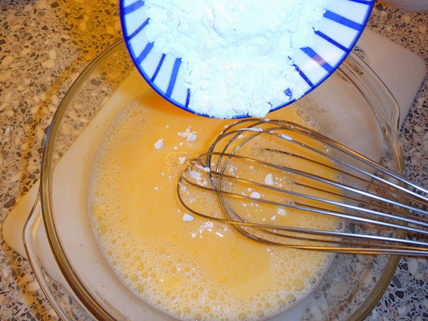 Añadimos el almidón o harina de maíz y batimos hasta que quede una mezcla bien fina.