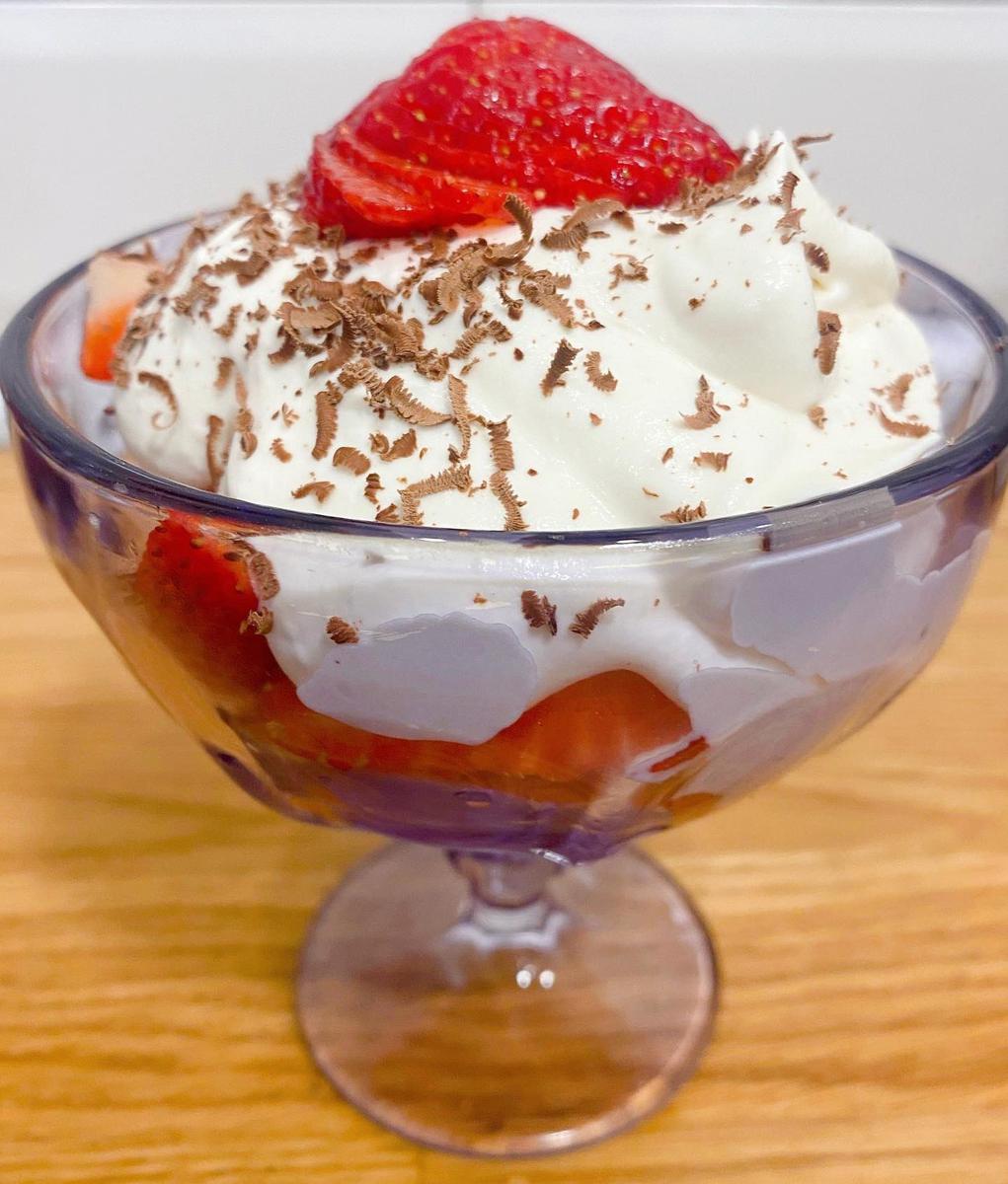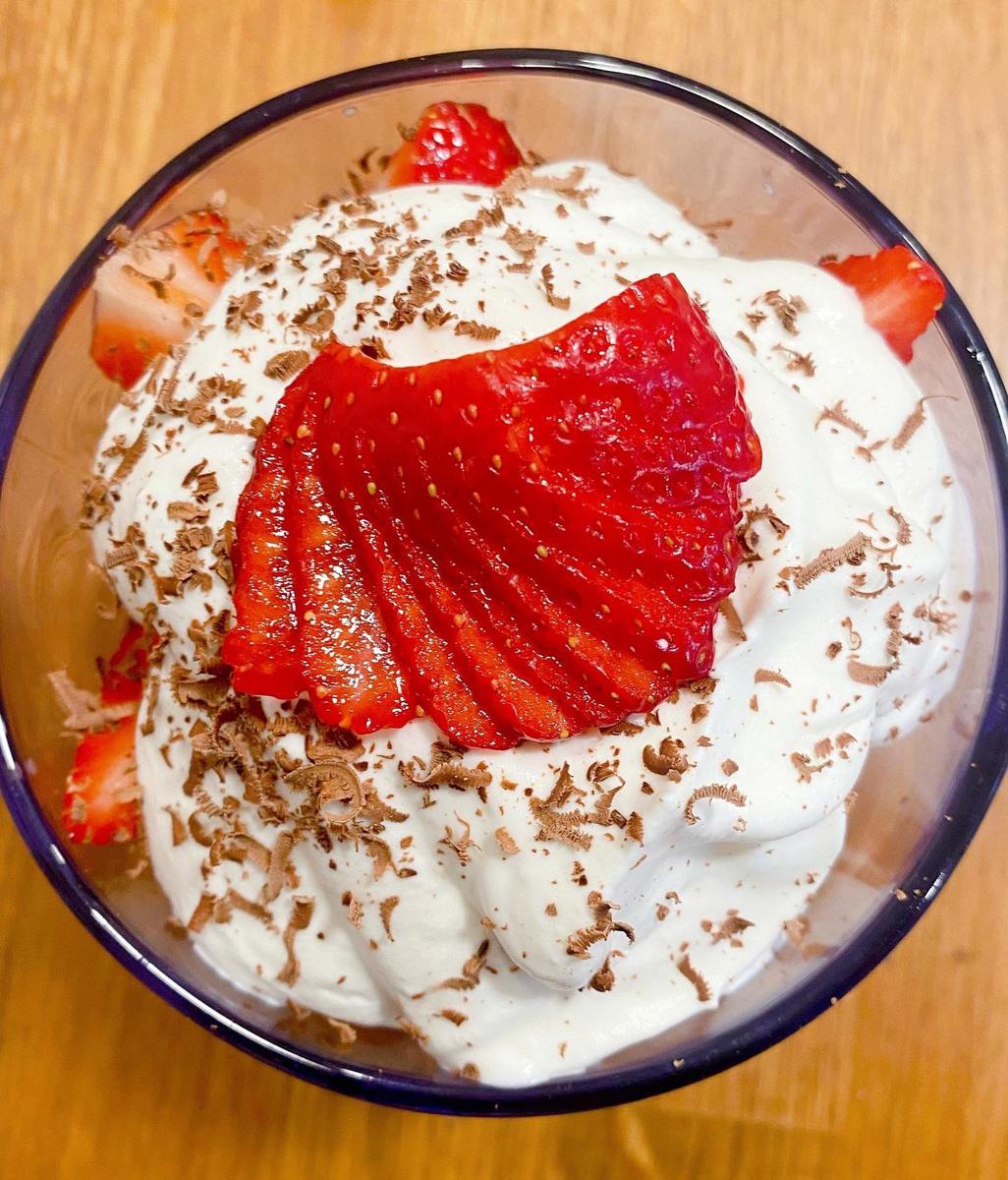 La crema chantilly casera está lista para usar. Puedes servirla sobre postres, frutas o cualquier otro plato que desees.