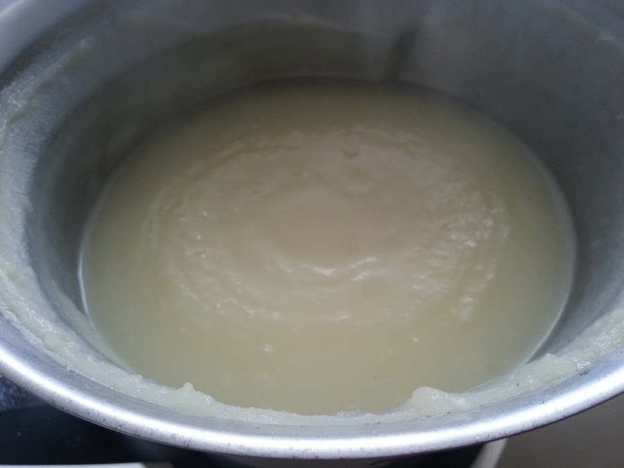 4. - Una vez hecho, pasamos por la batidora, pero no mucho, para evitar que nos quede chicloso. En la termo 30 seg. vel. 3.