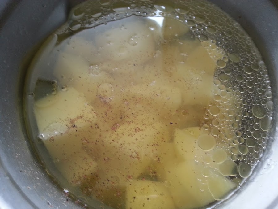 2. - Mientras pelamos y troceamos las patatas.
