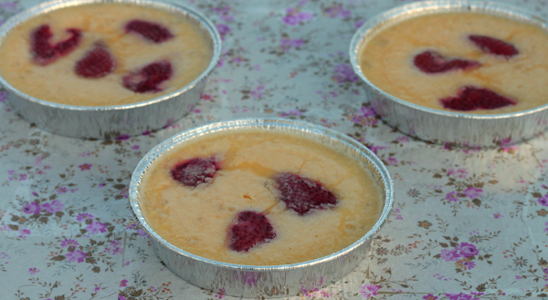 Lo primero que vamos hacer es romper un poco los huevos con un batidor de mano, es decir, ligeramente batidos, añadimos el endulzante y continuamos batiendo. Añadimos seguidamente la harina de Almendras, mezclamos e integramos la vainilla. Removemos y añadimos la nata (crema de leche) liquida, continuamos batiendo poco e incorporamos la cucharada de maicena. Terminamos de mezclar todo y distribuimos la mezcla en 6 cuencos en partes iguales. Colocamos las fresas cortadas dentro del cuenco, en la mezcla. Más o menos unos 20 grs por ración.