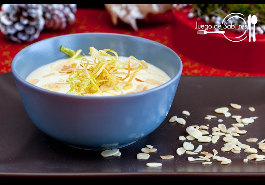 Servir y adornar con unas tiras de puerro frito y almendra laminada previamente tostada.