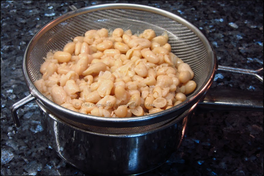 Lo primero poner las alubias en remojo la noche anterior.