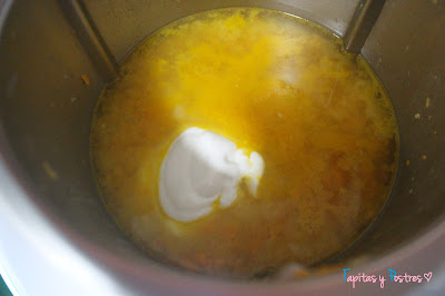 Pasado el tiempo, añadimos la nata (crema de leche) y la sal y trituramos un minuto a velocidad progresiva 7-10.